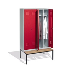 Spinde mit untergebauter Bank zur Trennung von Strassen- und Arbeitskleidung